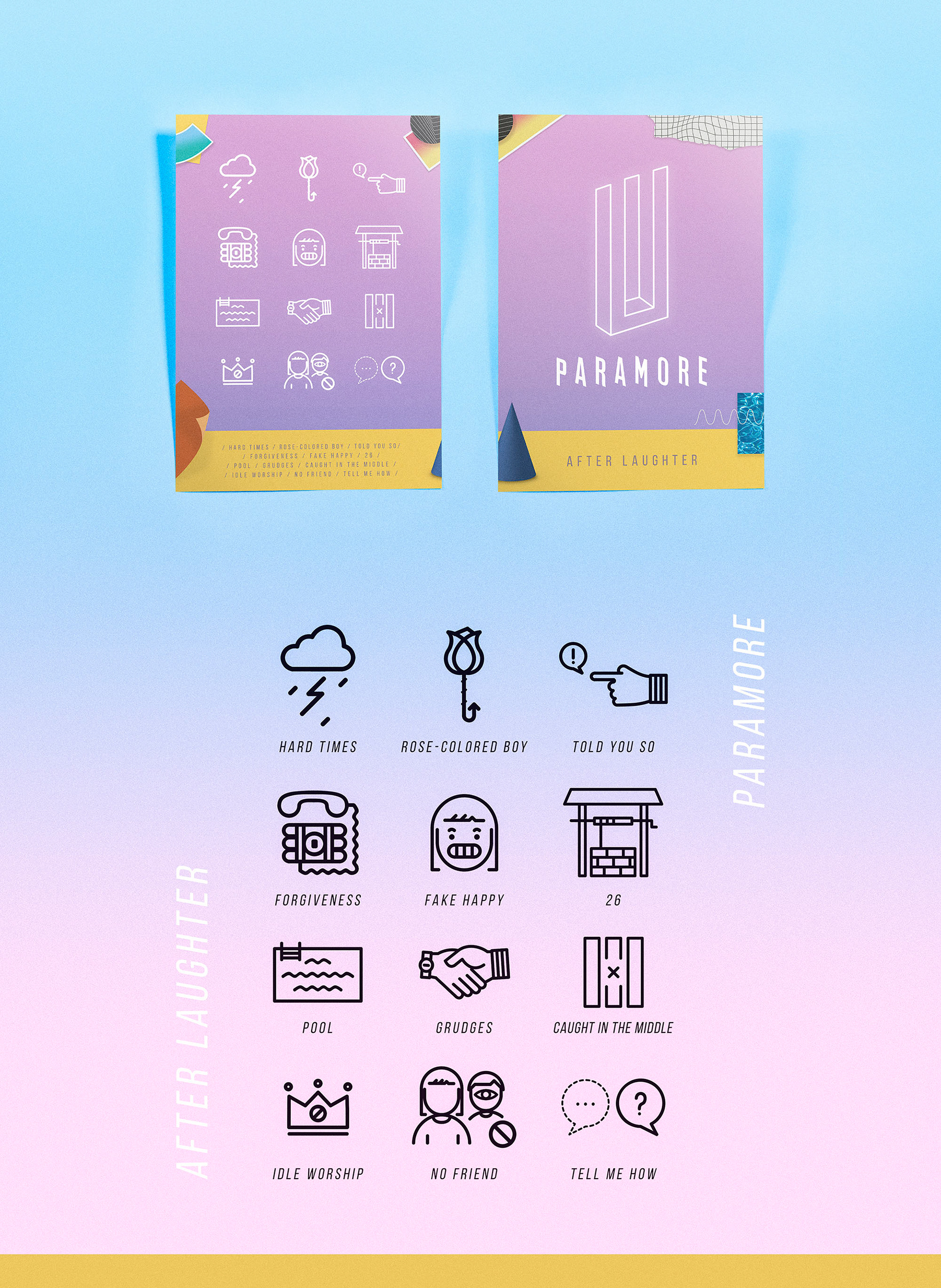 Neste projeto foram criados ícones para representar cada música do álbum "After Laughter" da banda Paramore. A fim de manter a identidade visual coerente com arte já existente do álbum, alguns de seus elementos originais foram recriados.